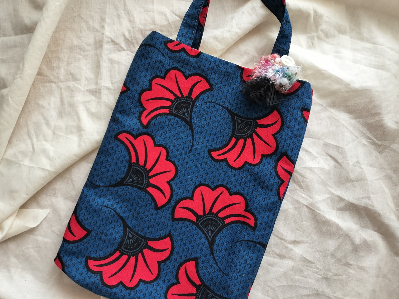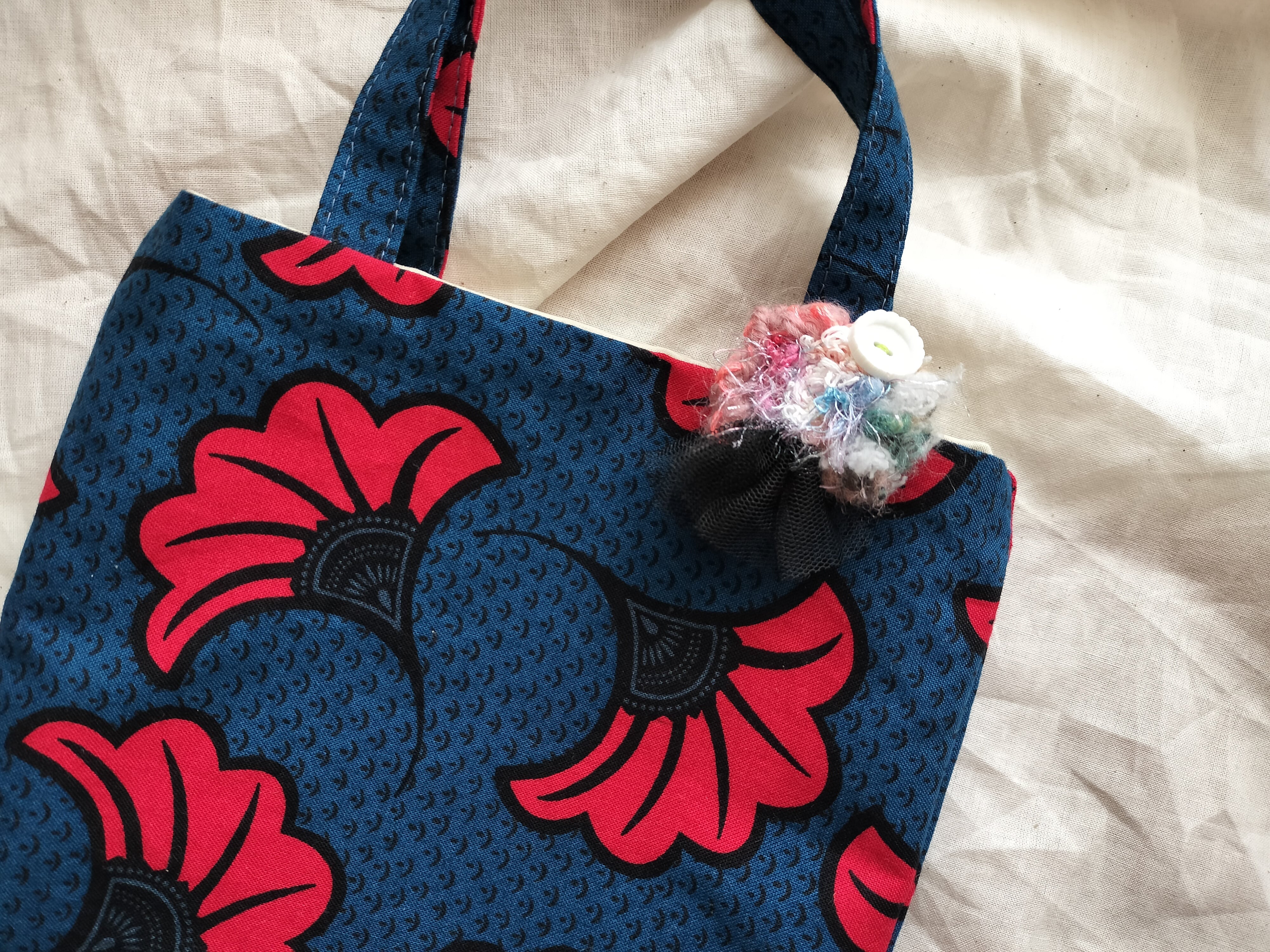 popyarn!のブローチを添えた、ちょっとそこまでミニトートバッグです✻