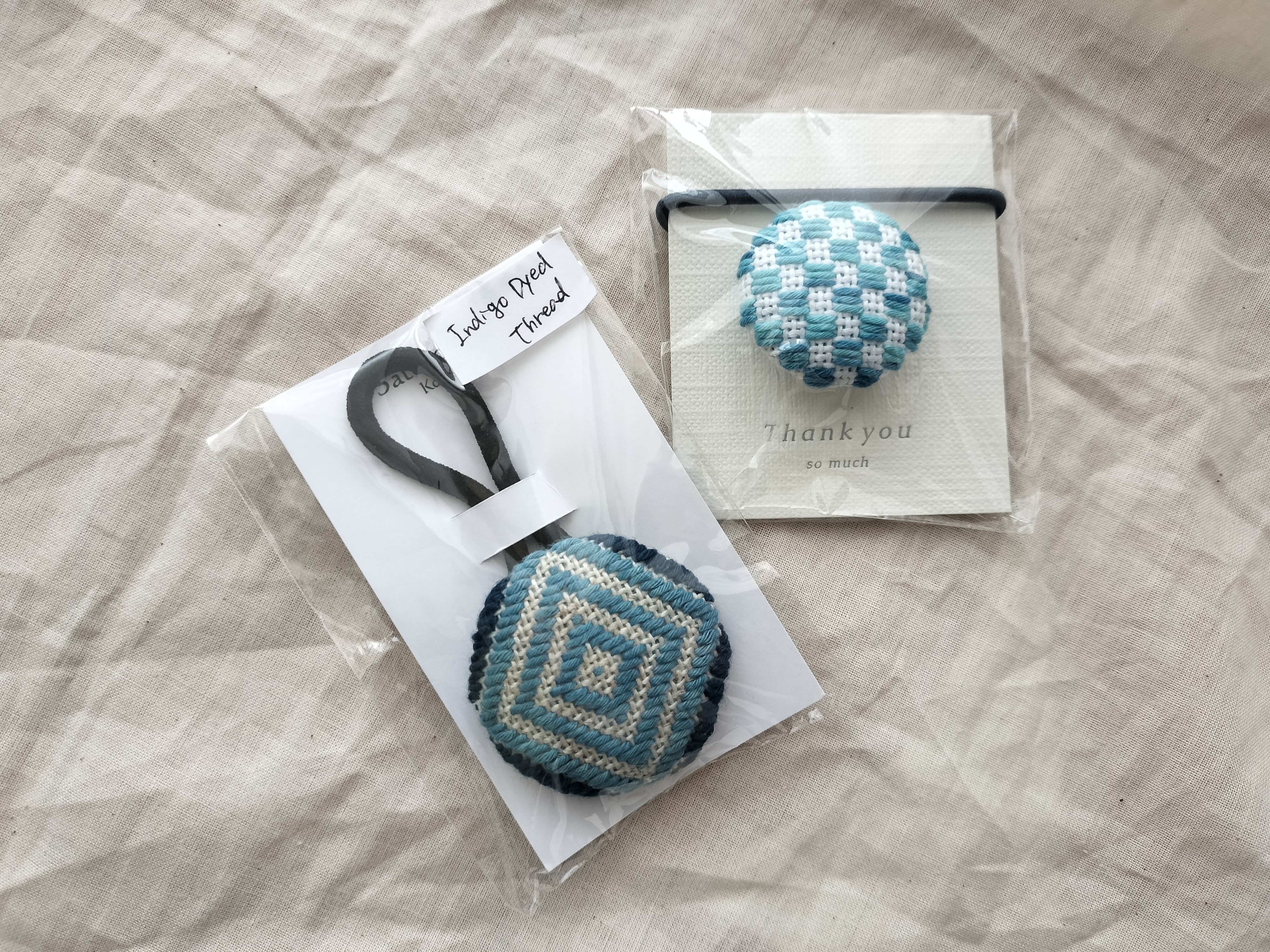 青森に伝わる伝統刺繍「こぎん刺し」を施したへアゴムです。