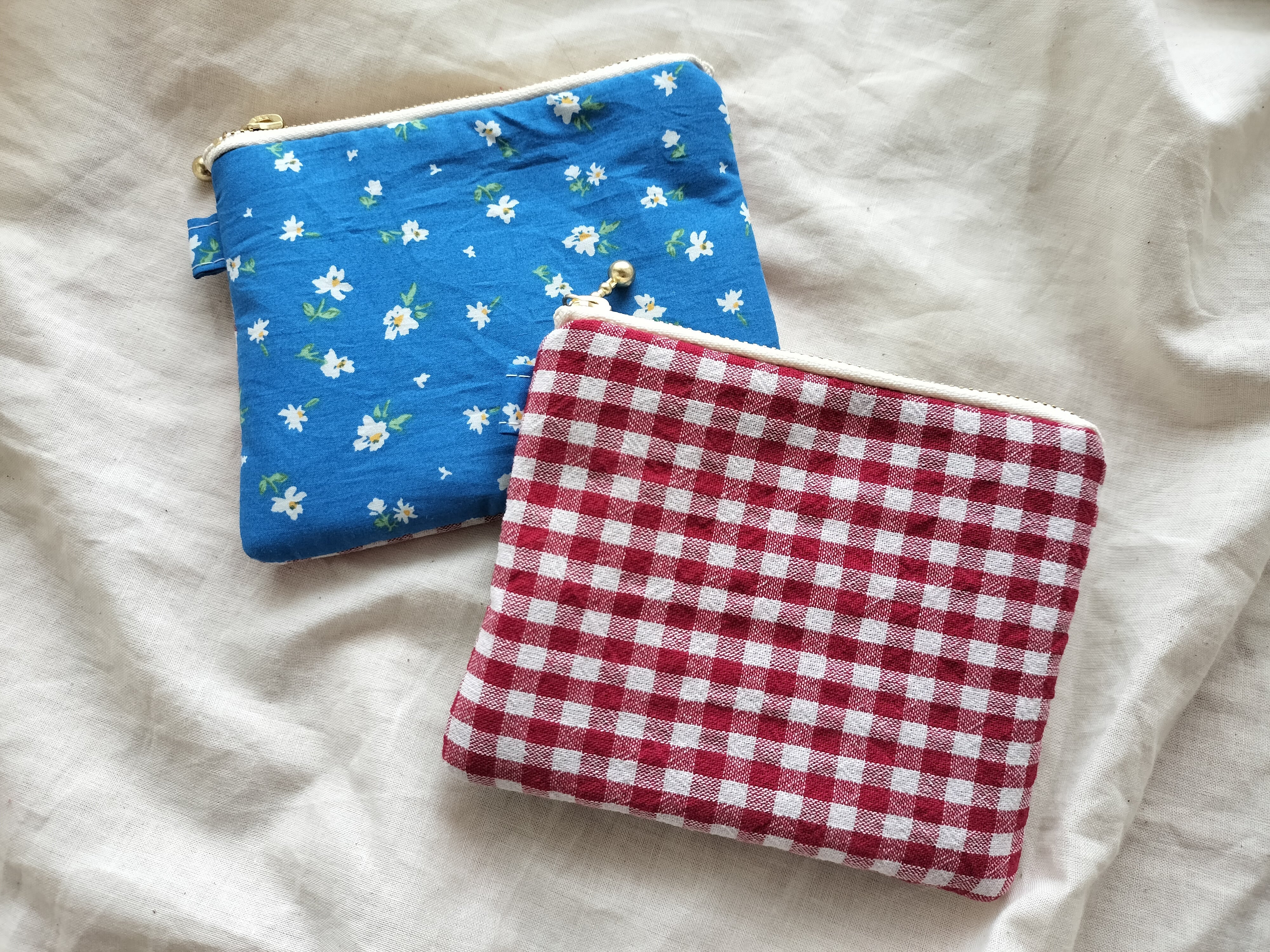 写真奥 : オモテ花柄 × ウラ赤チェック