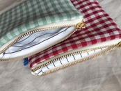 大好きな色柄を詰め込んだ、しっかりふんわり厚みのあるマチなしポーチです。